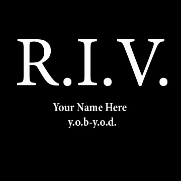 *На изображении представлен дизайн стандартной этикетки («яблоко») и стандартного конверта для виниловой пластинки: два стандартных варианта исполнения: черная или белая этикетка с надписью: R.I.V. + имя + даты рождения и смерти.